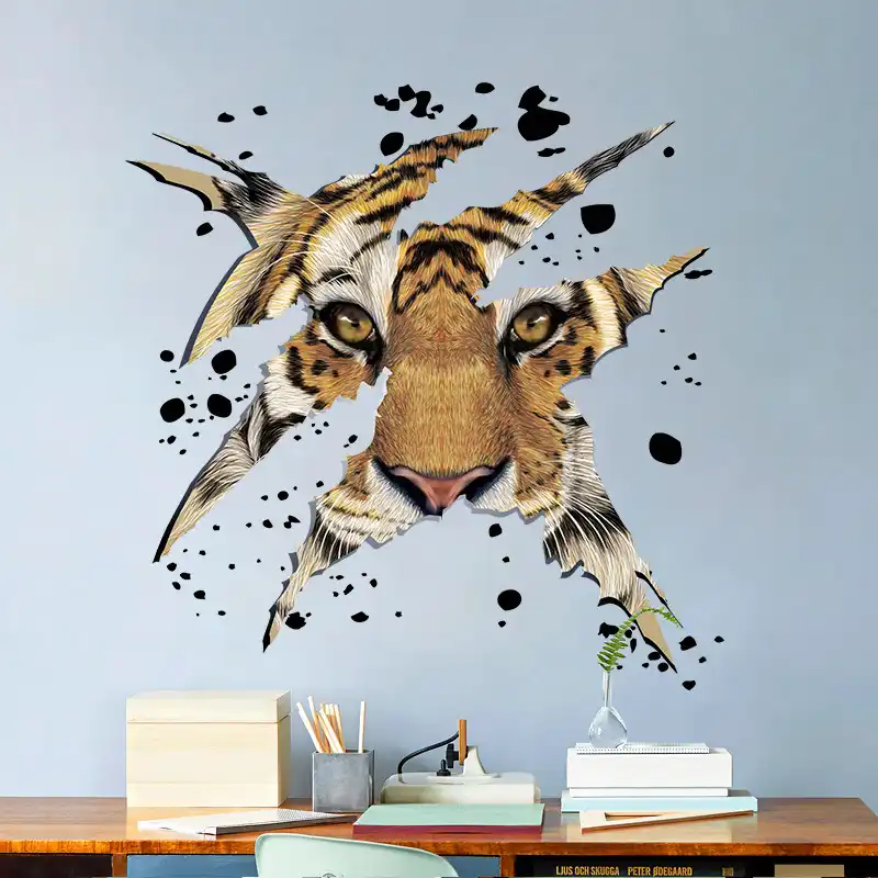 Animals Zoo 3d Mighty Tiger Head Wall Sticker Bedroom Living Room